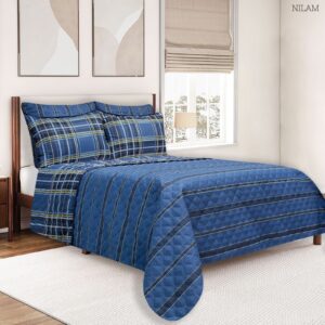 Colcha termosellada con relleno de fibras siliconadas y ligeras que conservan la contextura, el color y sus propiedades permitiendo a tu cuerpo respirar y mantener una temperatura constante durante la noche.